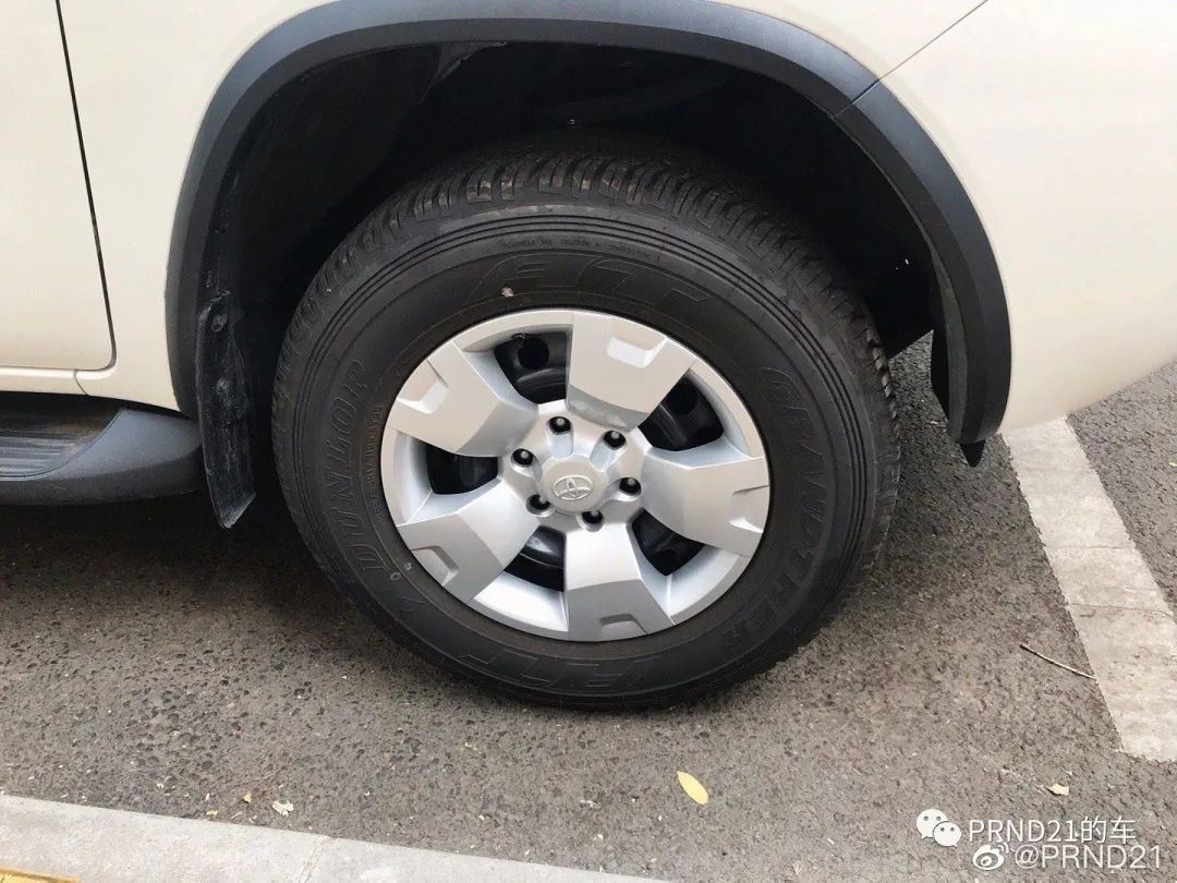 低配霸道的钢圈为6.5x17,匹配245轮胎,而平行进口的Fortuner有许多使用7.5x17的钢圈+265轮胎。