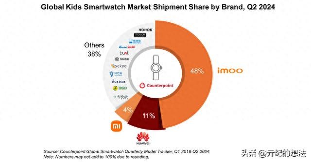 排名第二的是华为,它的市场份额为11%,由于其他品牌加强了在高端智能手表品类中的地位,所以华为的儿童智能手表出货量出现了同比下跌。随着新品牌的加入,主流品牌出货量出现同比下跌也在情理之中,遗憾的是没有找到去年的相关数据,不然的话这种对比会更加直观和醒目。