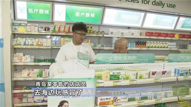 青岛某零售药店店员(来旅游的也很多,吃烧烤喝啤酒容易拉肚子,所以有很多购买拉肚子药的。还有吹空调感冒的,去海边玩,玩完之后吹凉风了,自己没注意,感冒了过来买点感冒药。)((记者:最远多远来这里买药的?)之前有李沧的、崂山的,最远的西海岸新区的都来过。)