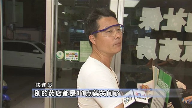 快递员(别的地方我也不清楚,我就知道这一家,别的药店都是11点就关门了。(记者:晚上购药的多不多?)这段时间,外地旅游的带孩子出来的,水土不服很正常。)