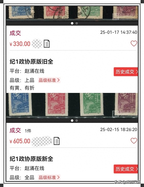 现在我们再来看看下面这套在2025年2月21日最新成交的一套纪1《政协》原版信销票的价格(见图三)。
