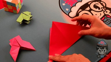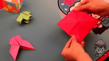现在,我们将刚才叠好的正方形翻过来。