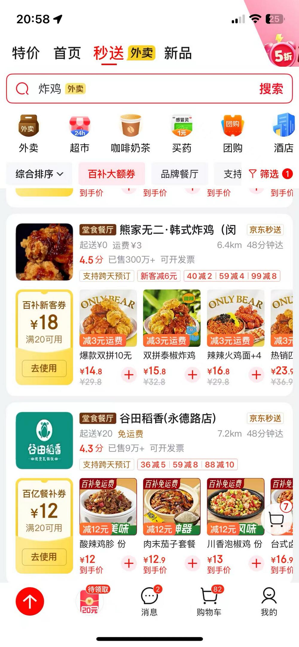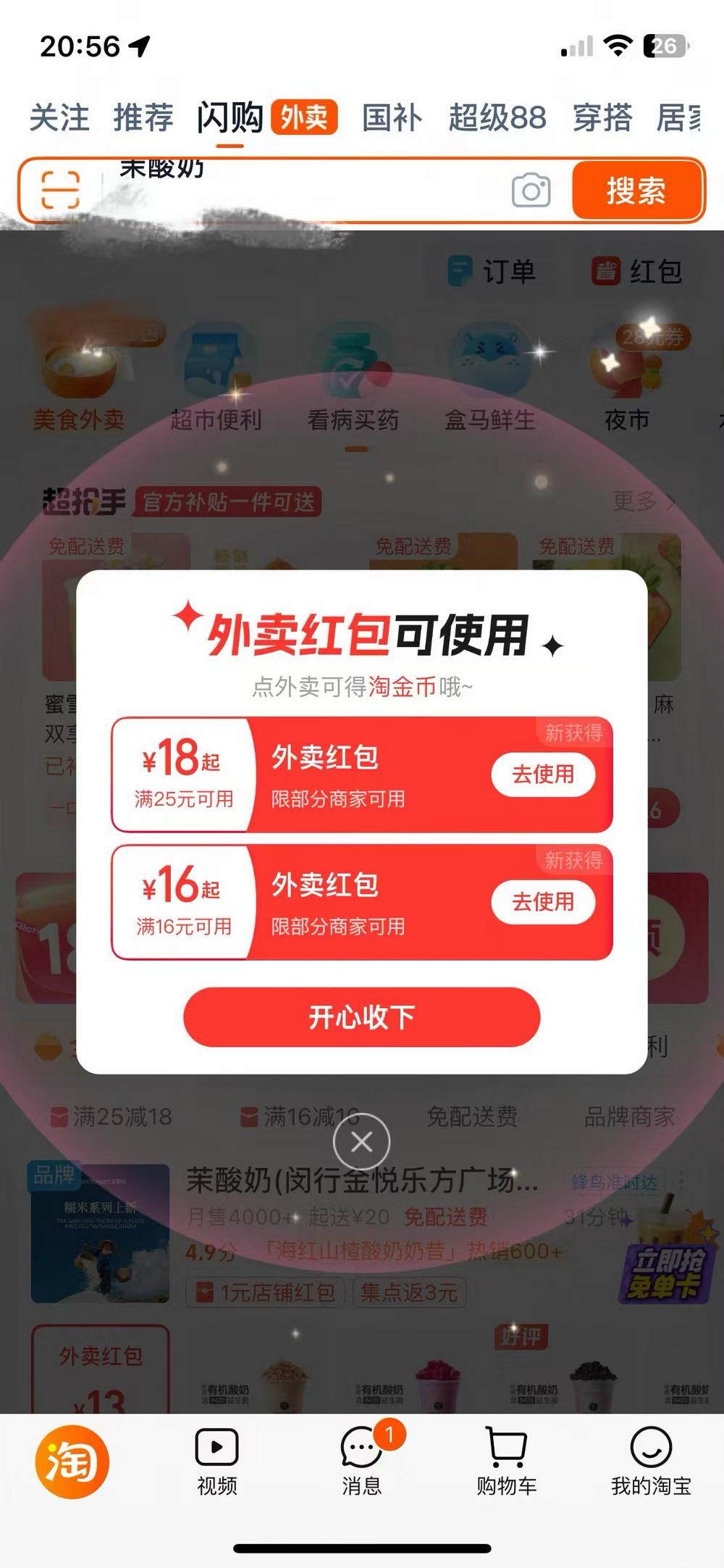 《科创板日报》记者搜索各平台发现,7 月 19 日,美团闪购仍向用户推送 " 美食兑换券 "、" 下午茶兑换券 " 等变相补贴;淘宝闪购频道 " 满 25 减 18"、" 满 16 减 16" 等高强度满减活动赫然在列;京东秒送亦未退场,持续提供 " 满 20 减 18"、" 满 20 减 12" 等大额优惠。