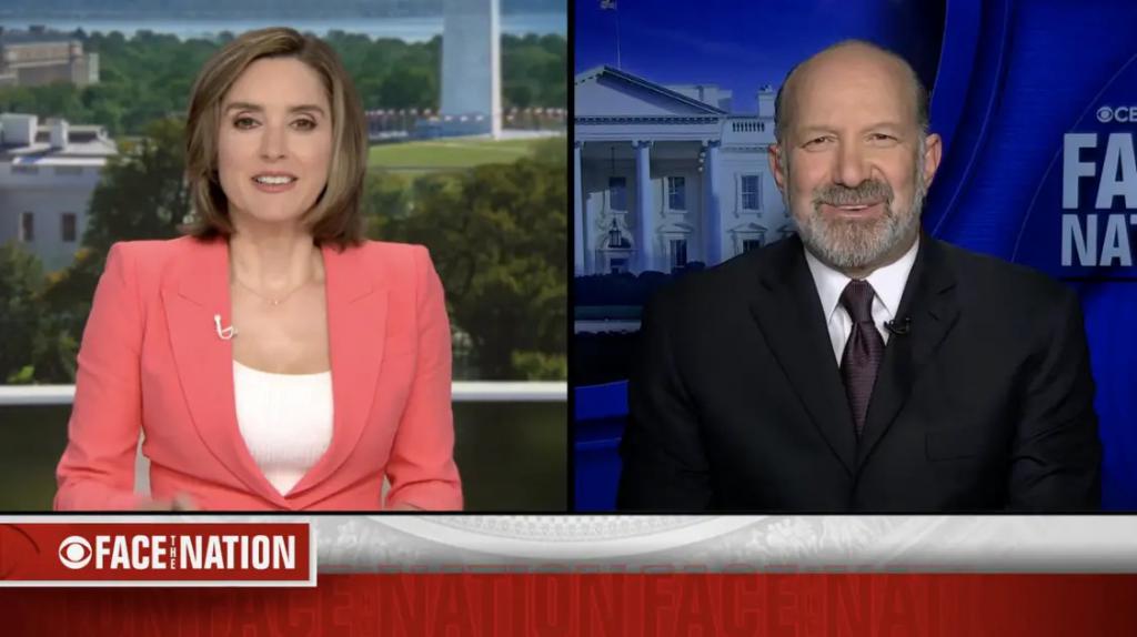 7 月 20 日美国商务部长卢特尼克(右)接受哥伦比亚广播公司节目采访的视频截图