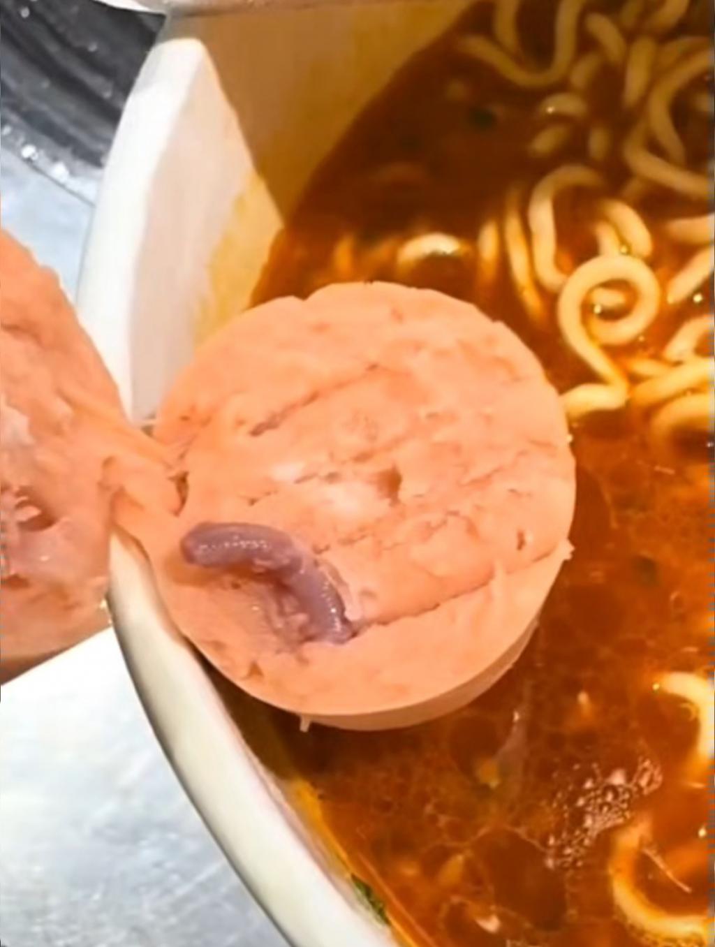 7 月 20 日,有辽宁省抚顺市网友发视频称自己在金锣火腿肠里发现一条状不明物体。根据网友所发视频,该条状物体呈淡紫色,长度约一厘米,该物体在一根金色包装的金锣火腿肠之中。在该视频评论区,有网友认为该条状物体像蚯蚓。