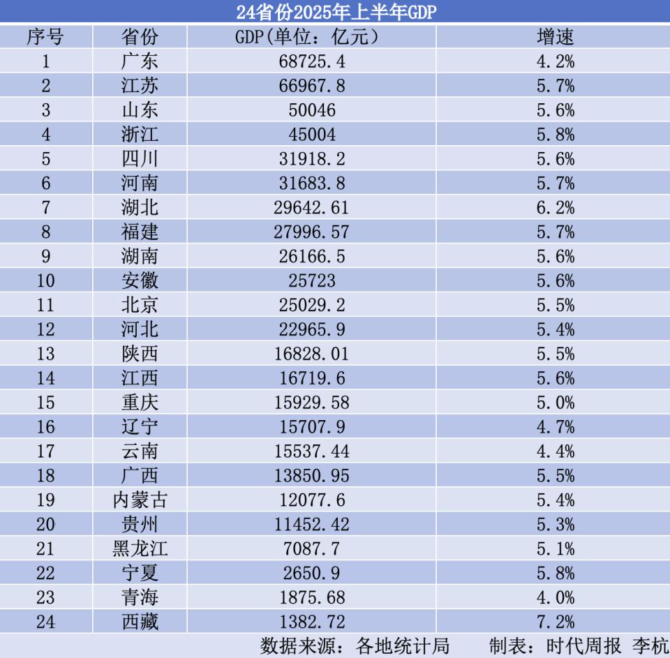 24省份半年报陆续出炉:广东稳居首位,四川守住第五
