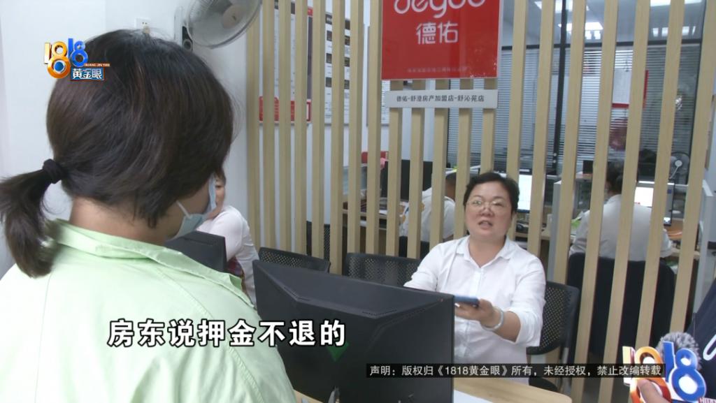 德佑地产宁波舒沁苑店 工作人员:押金的地方,她说三个月是三千,她说租了一个月,两千块要退,我说跟房东商量。你们听,房东说押金不退的。