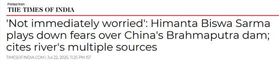 因此,在今年 7 月中国正式宣布项目开工后,印度主流媒体大多报道了相关消息,《印度快报》《印度时报》等引用了工程一些参数,简要提及印度对生态保护等关切,降低反对调门的同时还能有一些相对客观分析。印度各大媒体还大规模转发了阿萨姆首席部长希曼塔 · 比斯瓦 · 萨尔玛(Himanta Biswa Sarma)关于 " 目前并不担心 ",也 " 没有理由立即感到恐慌 " 的采访发言。