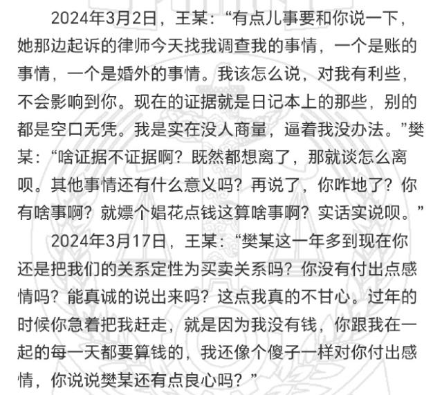 一审判决后,樊某不服上诉,提交了樊某与王某之间的通话录音 12 段,证明樊某与王某之间并非情人关系,而是性交易关系。