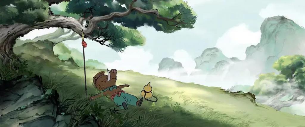 如果要展现 " 舍生取义 ",小猪妖是最适合的,不仅因为他是主角,还因为他的形象塑造在一行人中最完整,天真的斗志和理想激情并存。电影还特地保留了短片中 " 回家探亲 " 这段,通过和睦而温暖的家庭氛围,来为人物最后的高光做铺垫。