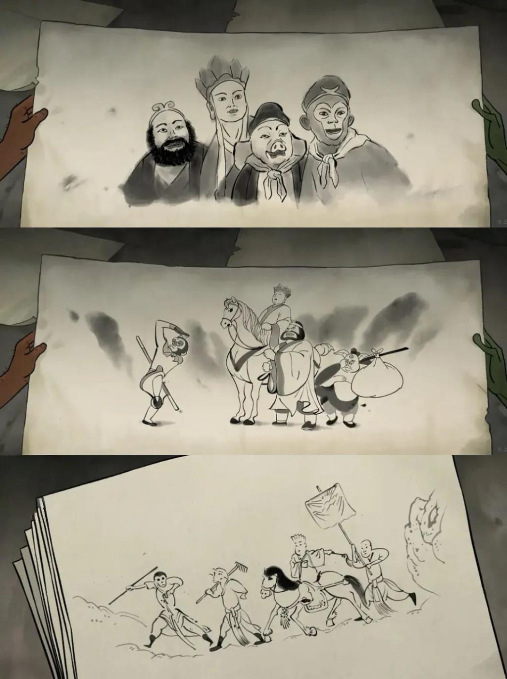 公鸡画像师画不同版本的师徒四人
