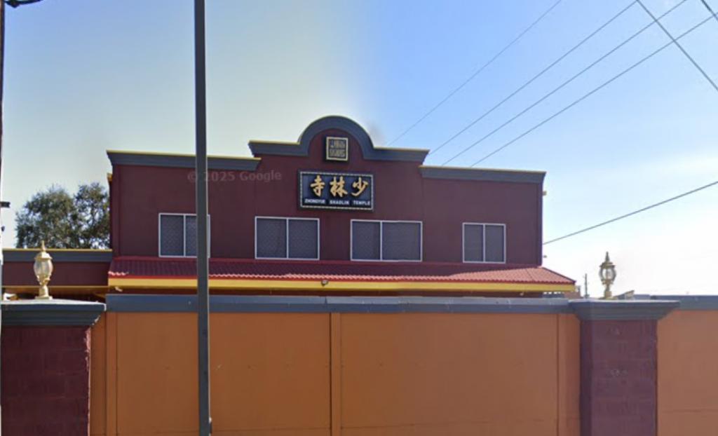 Shaolin Temple USA 登记的运营地址是在美国加利福尼亚州弗里蒙特市佩拉尔塔大道 4343 号,街景地图显示是一家名为 "SHAOLIN KUNG FU" 的机构,旁侧贴有 " 少林寺文化中心 " 的横幅。