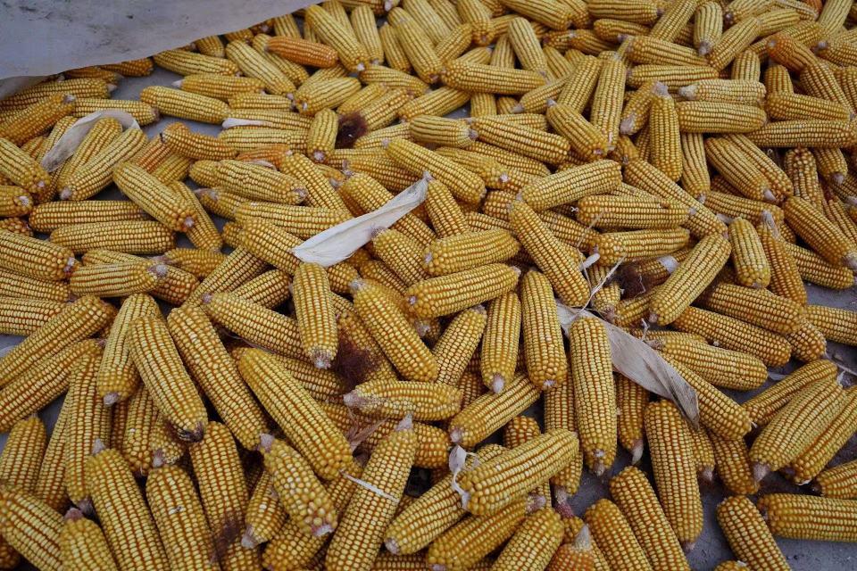 村内,农民在晾去年收起的玉米 图源:时代周报记者 傅一波