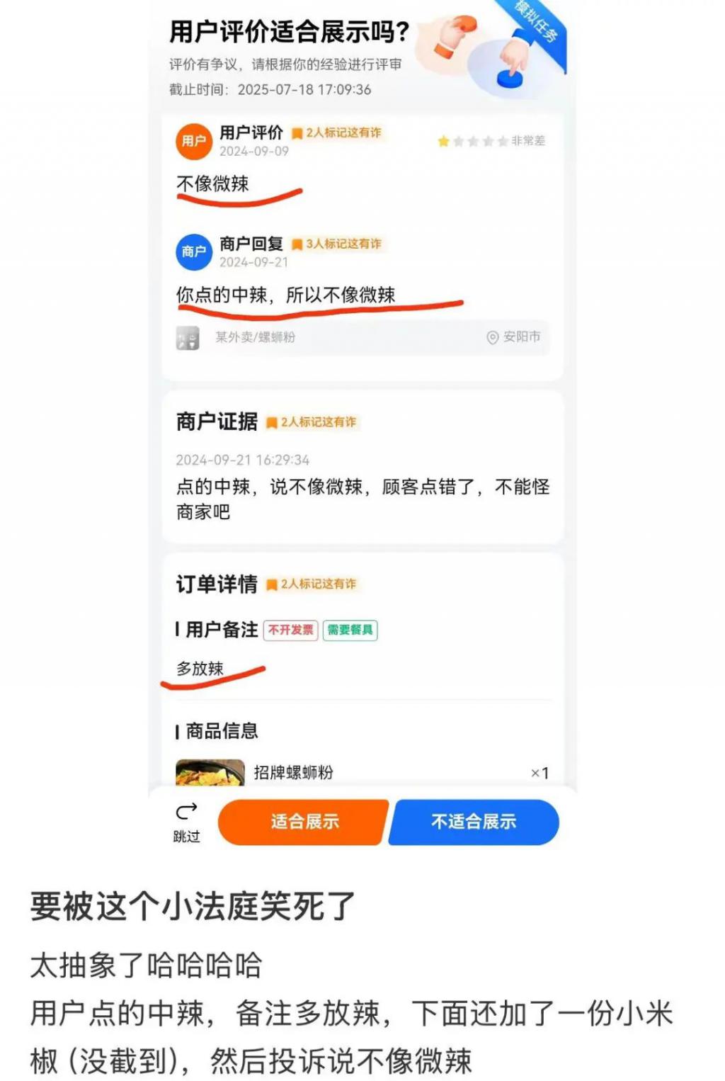 中青报 · 中青网记者曾关注到,当下,在外卖、二手交易等线上平台,由于买卖双方各执一词,有年轻人化身 " 赛博判官 "(在一些网络平台上受邀评判评论合理性、交易纠纷等的大众评审员——记者注),面对 " 公说公有理,婆说婆有理 " 的场面,作出自己的判断。
