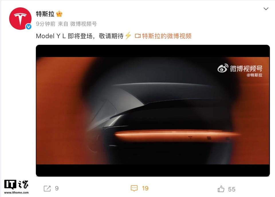 IT 之家 8 月 18 日消息,特斯拉官方微博宣布,Model Y L 车型即将登场,并发布视频展示了该车的内外设计。但微博并未公布该车型具体上线的时间,此前官方透露该车将于 " 金秋见 ",预计将于 9 月上市。