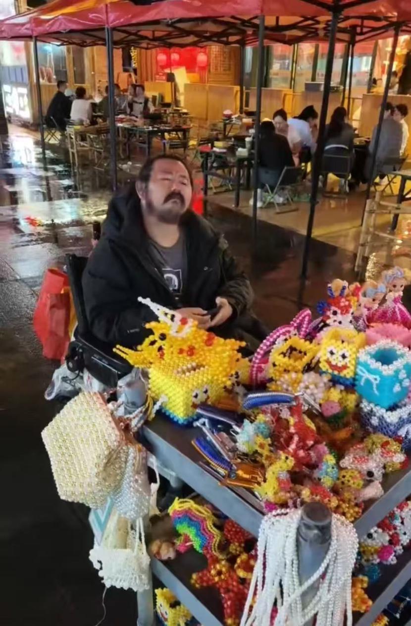 ▲ 22 日晚,胡雷在中卫摆摊,友人说其近日精神状态一直欠佳。 受访者供图