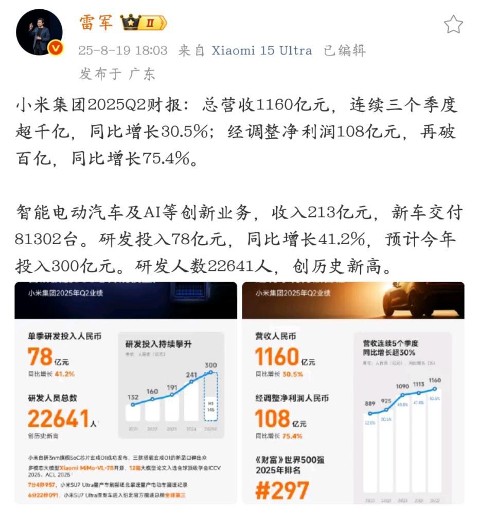 亮眼的数据,彰显了集团强劲的创收创利实力,也持续向市场证明小米 " 史上最强财报 " 的名头。