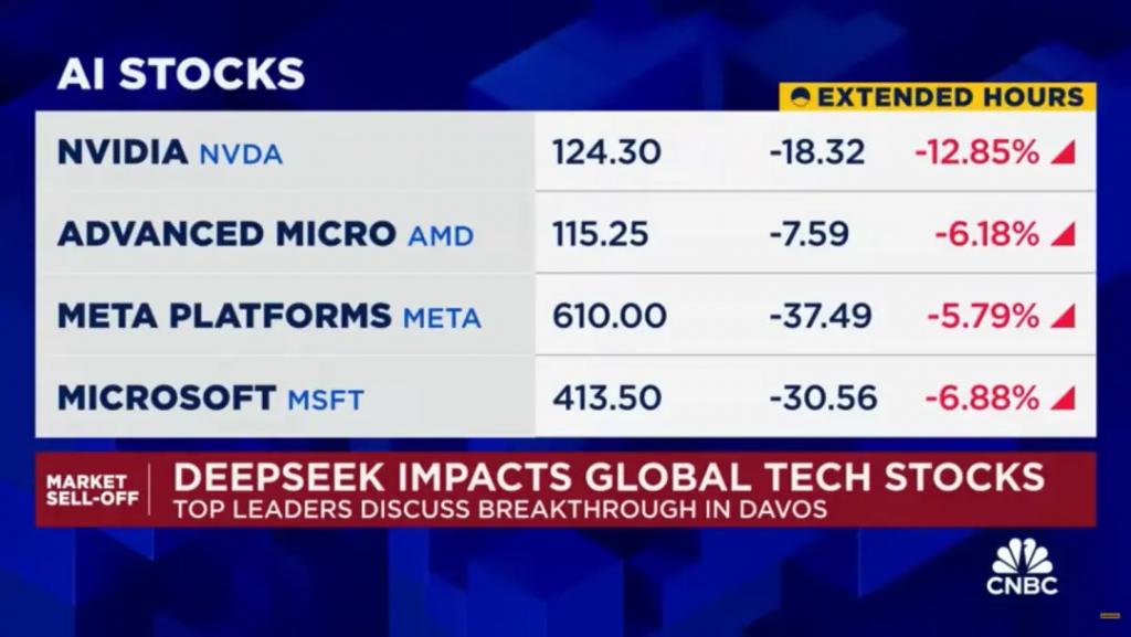 1 月 28 日,受 DeepSeek-R1 发布影响,美国科技股暴跌