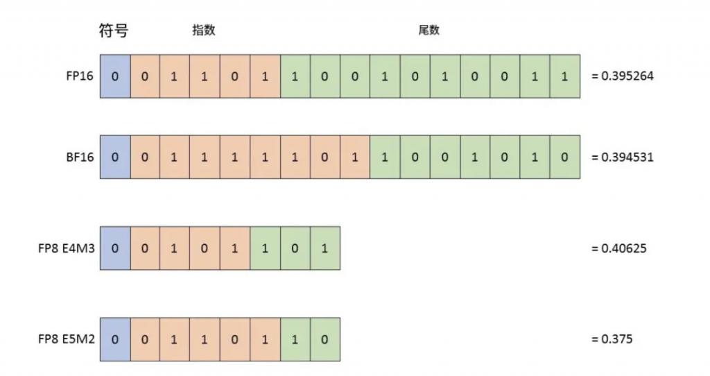 它的作用是压缩数据。FP8 指的是 8 位浮点数,这是它的核心技术类型。简单而言,就是用 8 个 "0" 或 "1" 来表示一个数字,比传统的 16 位、32 位格式节省 " 空间 "。