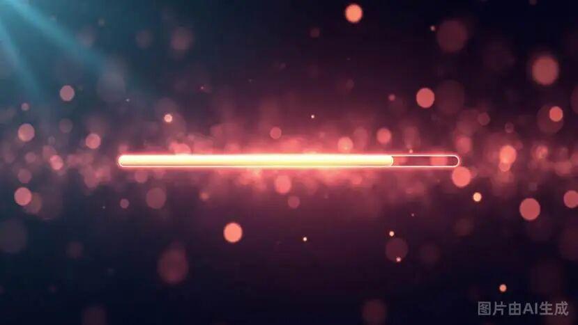 例如," 一条水平的发光进度条,位于画面下方,滑块在起始位置。背景是模糊的彩色光影。"