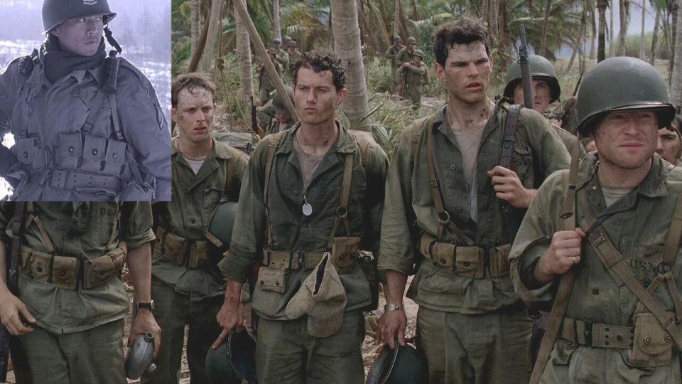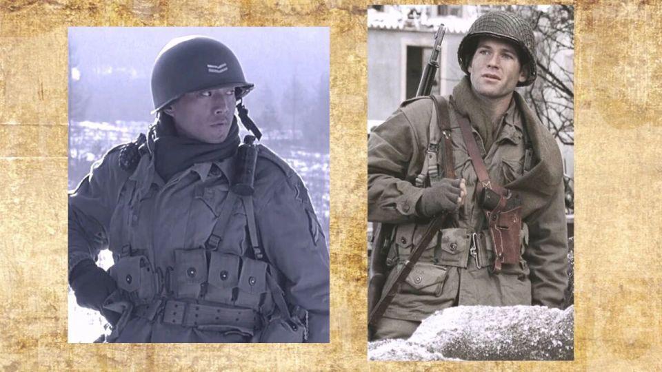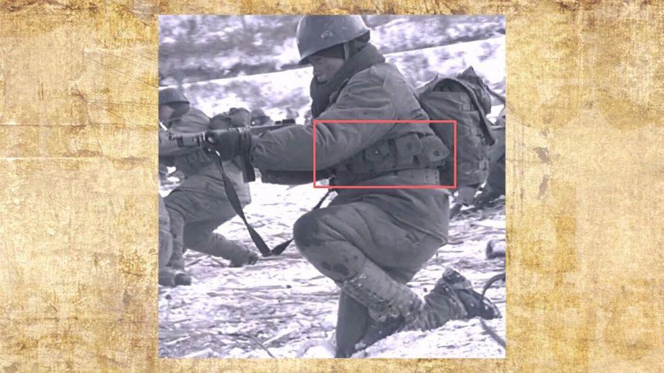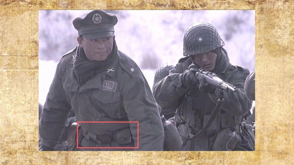 还有不知道是不是道具组的 M36 背带太短以至于和腰式弹夹包搭配时只到士兵的胸部位置,不得已又在腰间加一条手枪腰带,看上去有些别扭,可以简单参考下二战美国陆军、空降兵、海军陆战队是怎么搭配的。