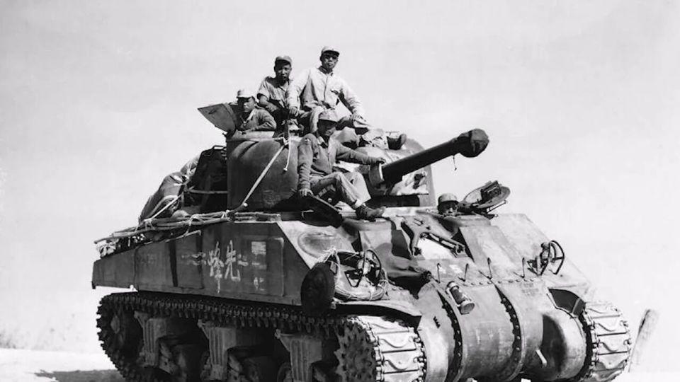 再再啰嗦一遍,美军除了丢在在天津、青岛等地的几辆没有武装的 M4A2 外,没有援助 M4 坦克给国民党军打内战,唯一装备过 M4 坦克的是中国驻印军,但是战后被美国人回收,所以只要看到 M26 和 M4 坦克出现在解放战争的影视剧中,一律可以视为穿帮。
