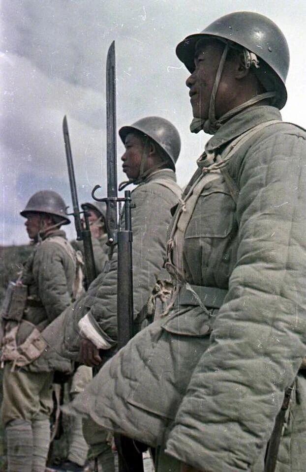 但细看的话其实槽点很多,比如 M43 野战服从来都没有大规模装备过大陆时期的国民党军,整体依然是以中山式制服为主,头戴 M1 钢盔可以说是影视剧中国民党军精锐美械部队的象征之一,但装备的规模并没有想象中那么大,钢盔依然是日式 90 盔为主;