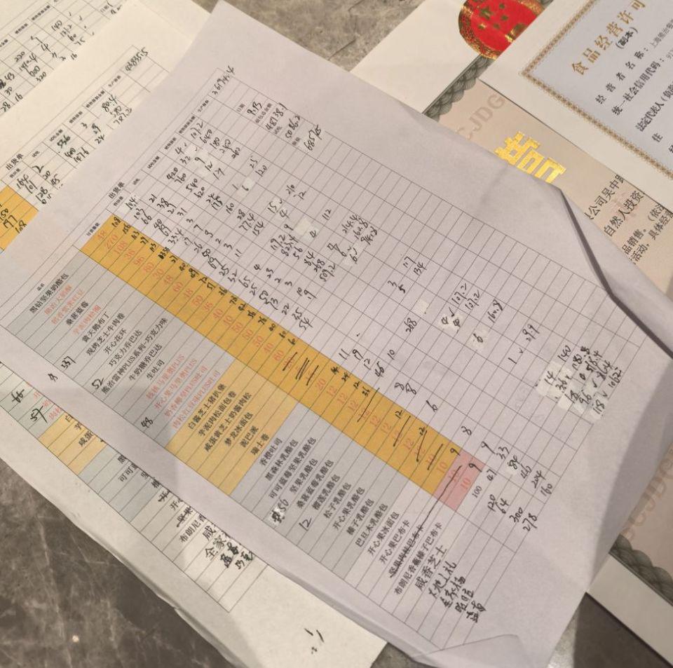 记者在现场看到,店长向执法人员提供的 9 月 13 日销毁记录中,该店面包销毁率较高," 蓝莓 " 的蛋挞销毁 118 个," 脏脏包 " 销毁 96 个," 熊治大奶酥 " 销毁 32 个。