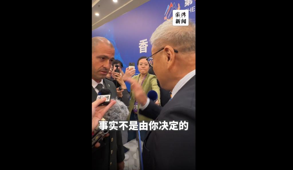 北京香山论坛上,国际关系学者阎学通与以色列军官激辩,以军官否认以军在加沙滥杀无辜,阎学通直言事实不由以方决定。图源:澎湃 . 新闻