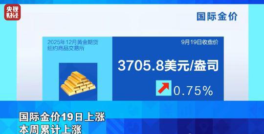 据央视财经,国际金价此前因美联储降息 25 个基点的预期兑现,投资者获利了结而连跌两日,部分资金本周五逢低买入,推动国际金价周五上涨,重回每盎司 3700 美元整数关口上方。截至收盘,纽约商品交易所 12 月黄金期价收于每盎司 3705.8 美元,涨幅为 0.75%。
