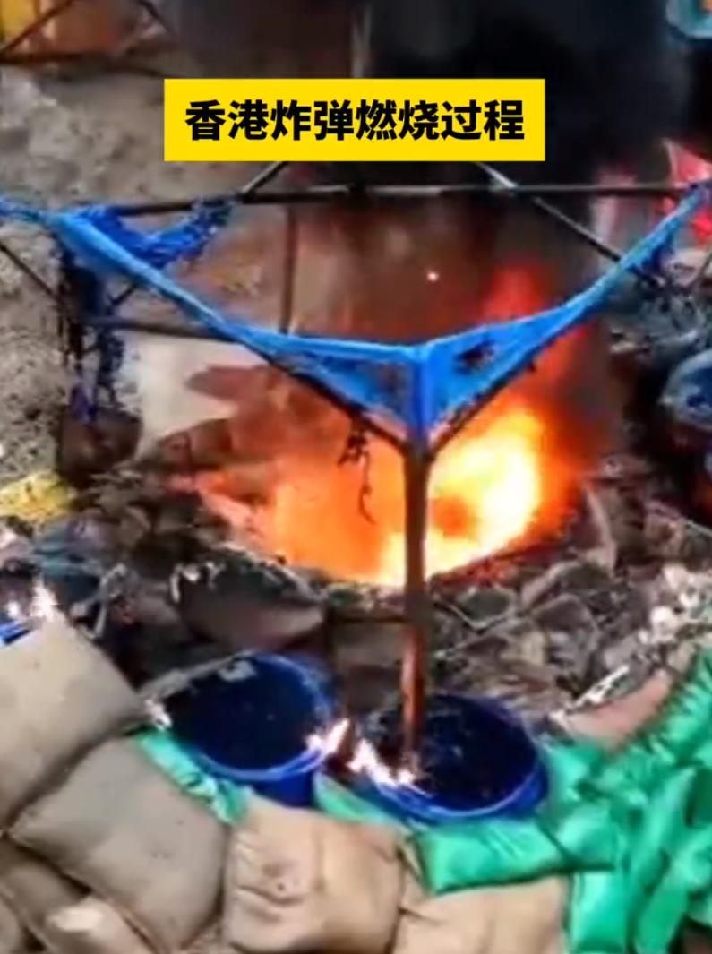 据中国蓝新闻,香港警察公布了一段炸弹燃烧过程的视频。