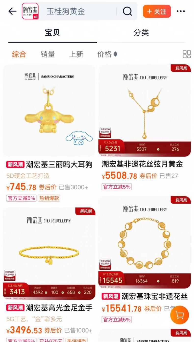因为 K 金比传统足金更硬,更容易造型,可以做出更复杂和时尚的设计,潮宏基当时押注 " 年轻女性消费群体 ",推出大量轻奢、时尚的 K 金首饰。