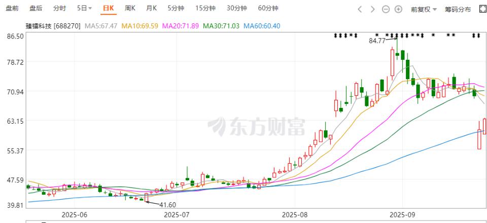 二级市场上,公司股价今年以来持续攀升,累计涨幅接近 100%,并在今年 8 月底盘中刷新上市以来新高,股价一度飙涨至 84.77 元 / 股。截至 9 月 23 日收盘,该股报 63.6 元 / 股,总市值 136 亿元。