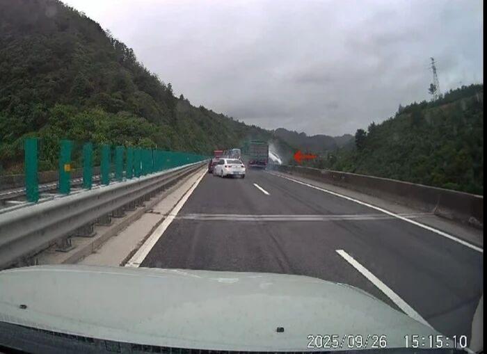 9 月 26 日下午,沪昆高速贵州黔南州贵定县段二道坝大桥处,发生严重交通事故。网友发布的行车记录仪显示,9 月 26 日 15 时 15 分,沪昆高速贵定县段二道坝大桥上,一辆大货车未刹住车,撞向前往拥堵的车流,一辆轿车被撞飞至桥下,桥上也有多车受损。现场视频显示,被撞飞到桥下的车辆侧躺在便道上,桥面落差约有十多米高。