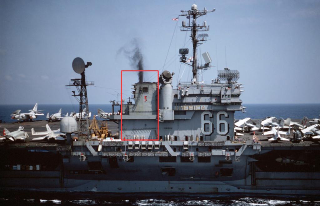 首先,由于全舰以核反应堆驱动,核动力航母不需要复杂的锅炉和排烟系统,也不需要携带巨量的船用燃料,上层建筑上也不需要设置烟囱,从而大幅减小了动力系统占用的空间。