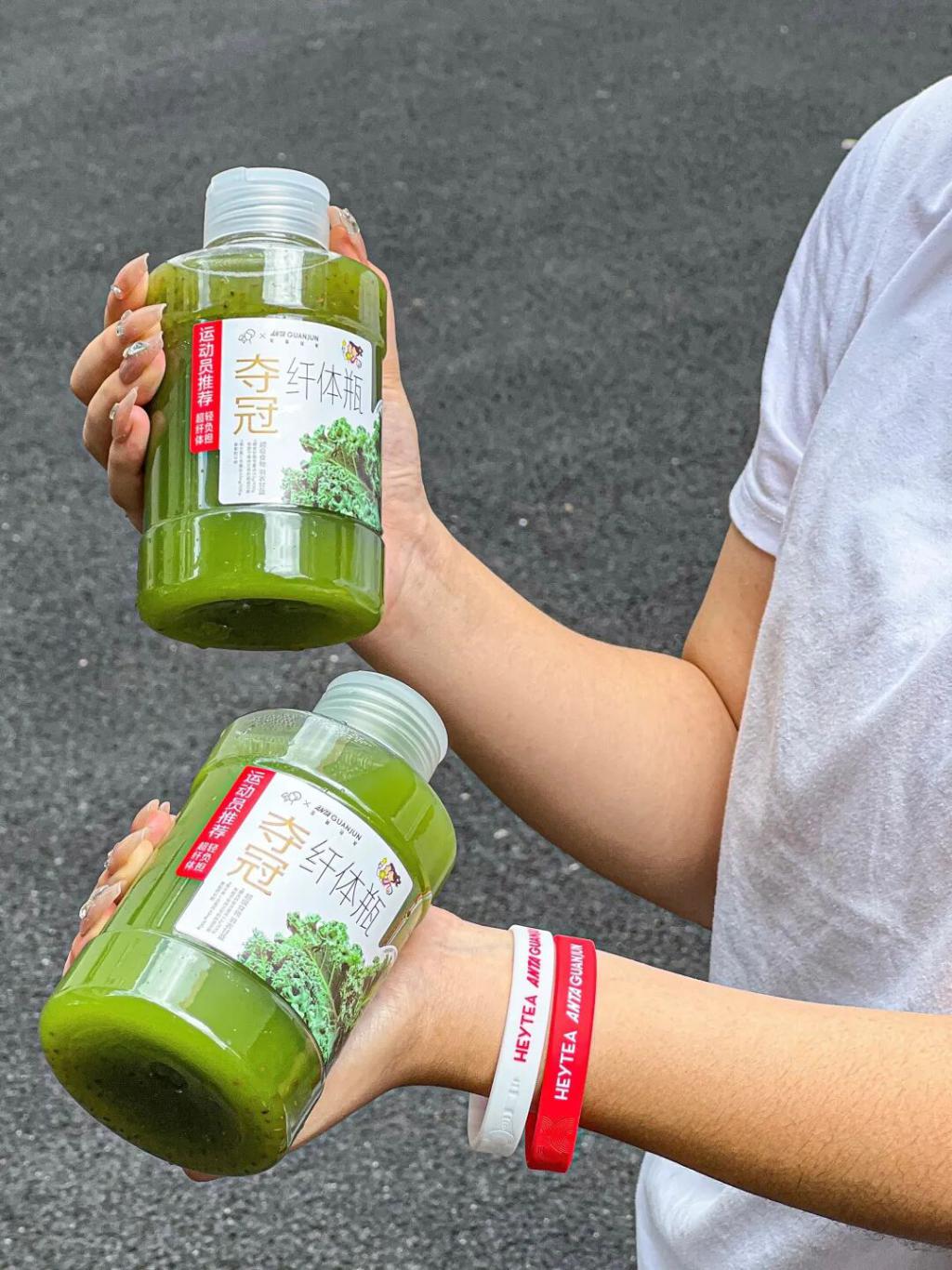 直到 2024 年 7 月,巴黎奥运会期间,喜茶推出 " 夺冠纤体瓶 "(后更名 " 羽衣纤体瓶 ")。借助这场体育热潮的营销攻势,羽衣甘蓝与 " 纤体 " 二字被紧密绑定。在精准的产品定位切入下,羽衣甘蓝饮品顺势被转化为一种消费符号。