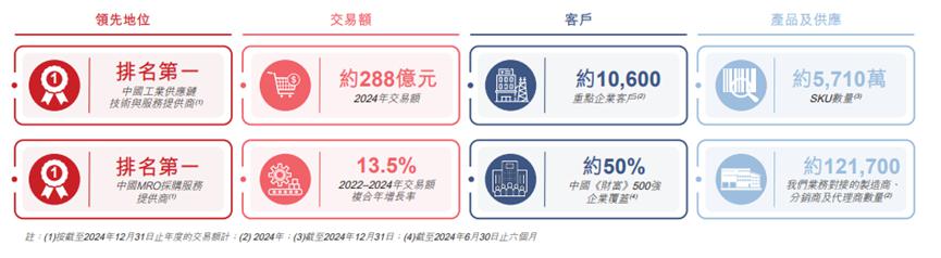 据招股书披露,京东工业当前是中国 MRO 采购服务市场的最大参与者。按 2024 年的交易额计,京东工业规模为第二名的近三倍。同时京东工业也是中国工业供应链技术与服务市场最大的服务提供商。