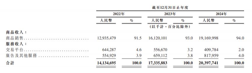 京东工业采取 " 平台 + 自营 " 两种模式并行,但自营占主导。2024 年其商品销售收入为 191.7 亿元,占营收总量的 94%,交易平台和广告服务等收入占比只有 6%。