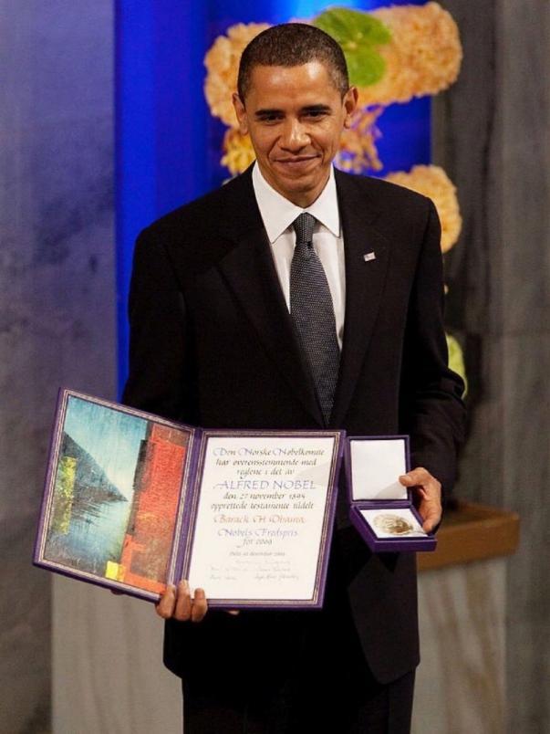 2009 年 7 月,时任美国总统奥巴马获得诺贝尔和平奖。
