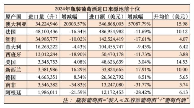 即便是曾经更受欢迎的进口红酒,近年来除了澳大利亚因关税政策反弹之外,从法国到中南美洲的各价位产品进口量也普遍下滑。