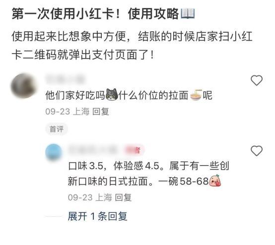 国庆期间,小红书用户 " 巨能吃 " 成为了 " 小红卡 " 的首批持卡者,他在笔记中表示持卡到 " 精选门店 " 消费就能获得 9 折优惠,支付过程非常流畅。不过在他看来,这家餐厅体验感拉满,味道却只是中规中矩。