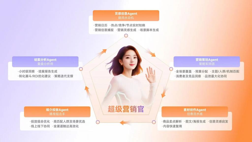 随后的 8-9 月,瓴羊分批次发布了数据分析 Agent(超级数据分析师),以及由五大子 Agent 构成的超级营销 Agent,将积累的战果扩展到数据驱动决策和全域营销两大核心领域,如同拼图拼接,开始呈现出平台化的雏形。