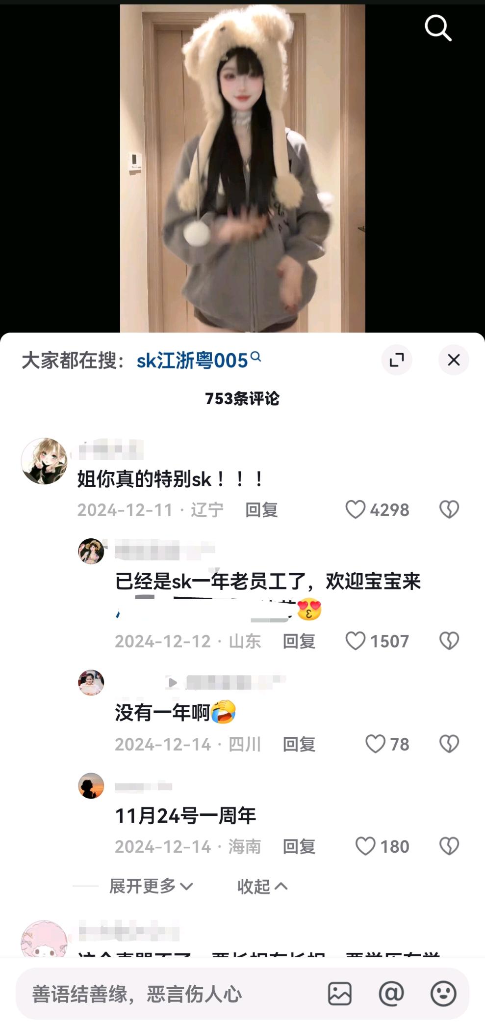 博主翻跳 SK 开场舞的视频下,热评第一称「特别 SK」