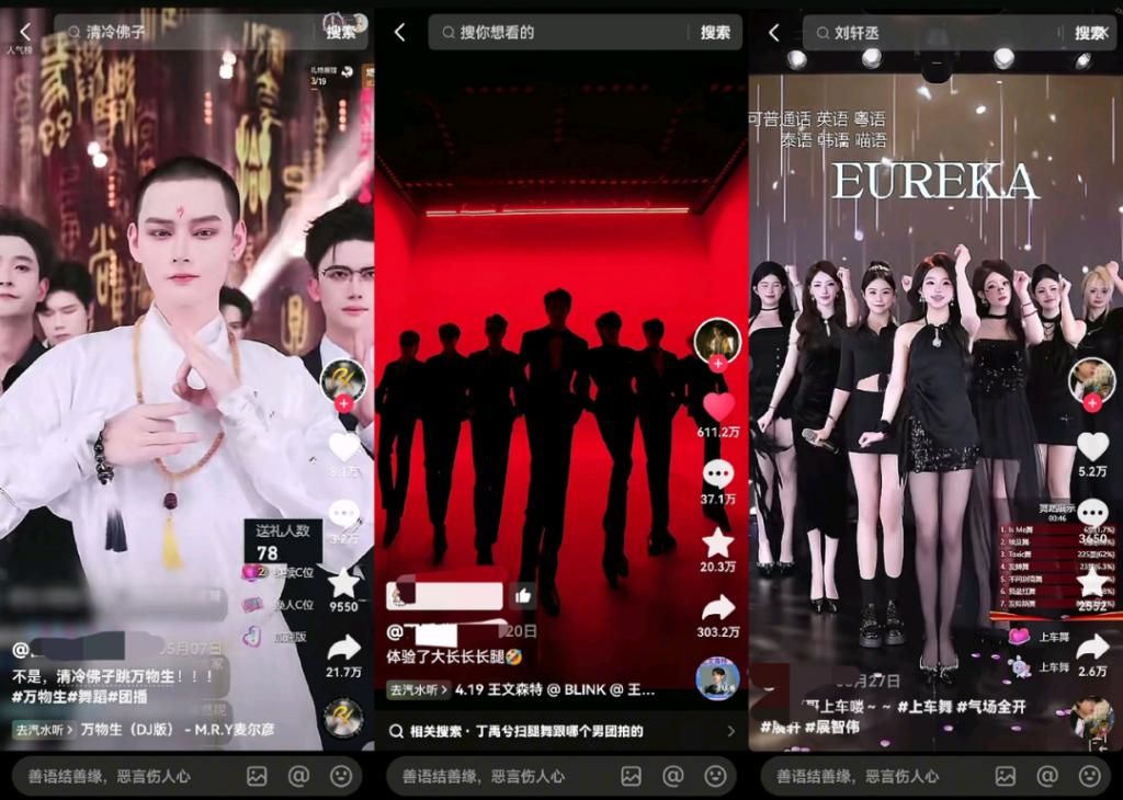 团播舞的第一轮出圈往往在抖音社区内完成,这有赖于抖音在舞蹈垂类已经形成的极为活跃和强互动的 UGC 生态。