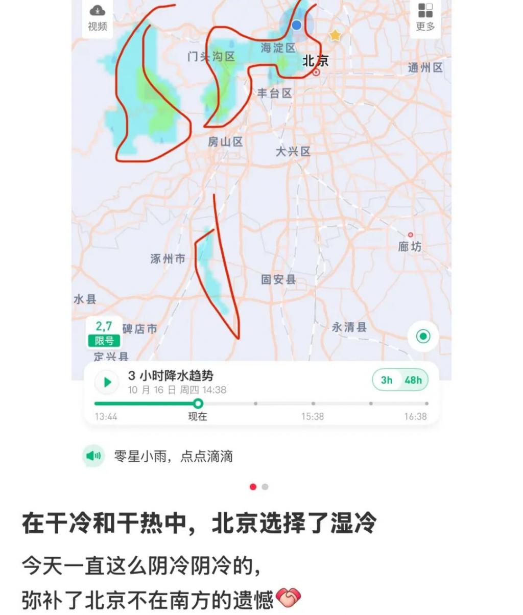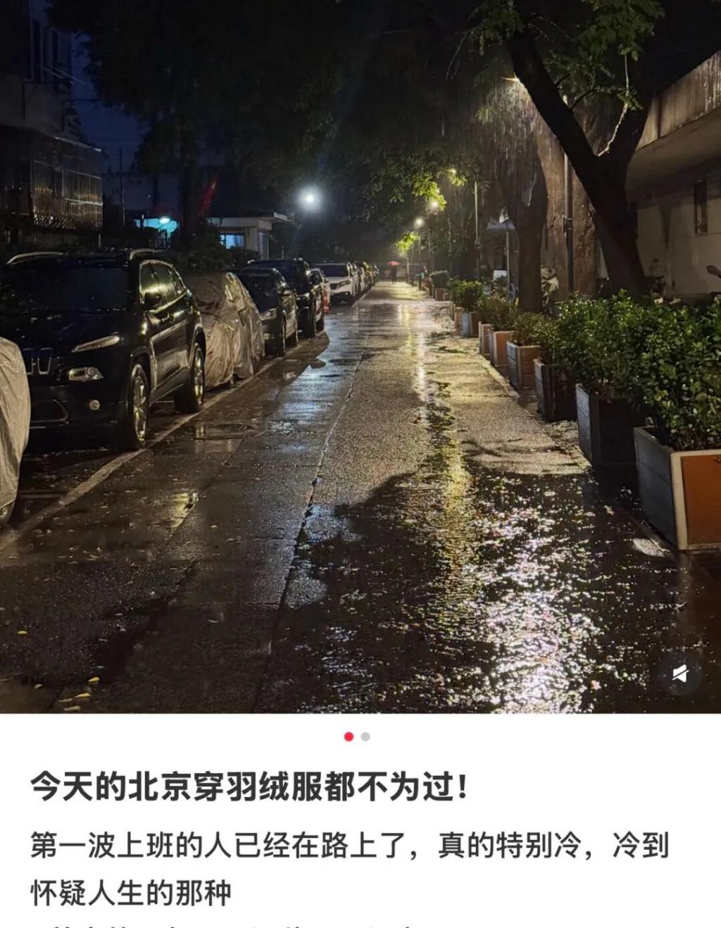而最近由于副高气压迟迟不愿南移导致的下雨降温,更是把北漂们彻底调教老实了。" 一场秋雨一场寒,听说北京的气温在秋雨的加持下,这周末就会逼近冰点。"