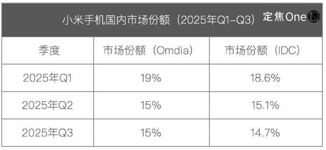 小米是今年份额变化最大的厂商,从第一季度的 19% 到第三季度的 15%,排名从第一跌至第四。