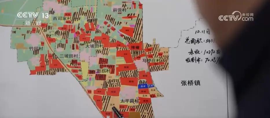 记者在大马镇政府看到,办公室的“秋收作战图”上,标注着收割进度和 130 多名机关干部、200 多志愿者的分布位置,太平岗村是重中之重。