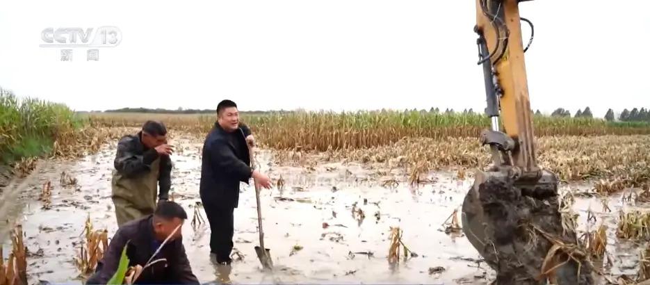 记者来到鄢陵县大马镇太平岗村时,村干部们正在组织挖掘机、抽水机排除庄稼地里的积水。村干部王红兵告诉记者,太平岗村在全镇地势最低,还有 1500 多亩玉米、大豆无法收割,是全镇秋收最大的一块“硬骨头”。