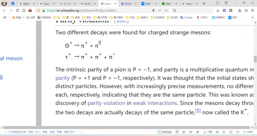 也就是说我虽然可以从它们的衰变物回推出衰变前是 θ 还是 τ 粒子,但是我无法直接判断一个 "k 介子 " 在未来究竟是会衰变成两个粒子还是三个粒子。这也意味着 "k 介子 " 在空间上并非是对称的,这显然违反了当时科学家所坚信的宇称守恒。