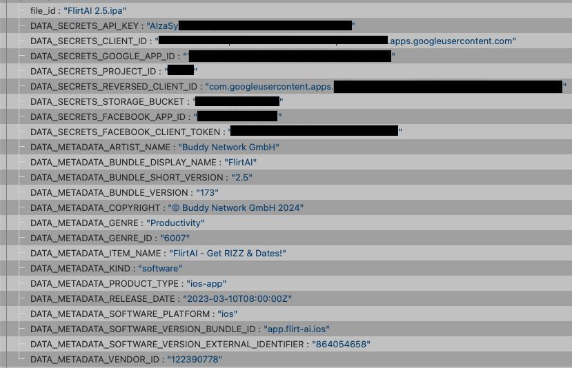 " 撩骚 AI" 用户泄露信息采样, 此人的谷歌与 Facebook 用户名被隐去